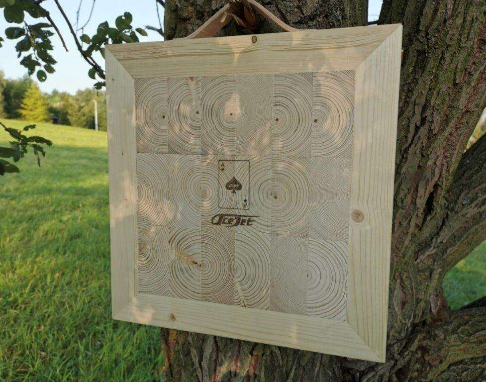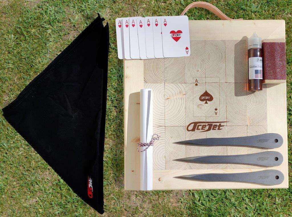 AceJet Elite set brings you the ultimate combination for knifethrowing in the wild. A 21" Square target is made out of top quality Northern Spruce wood and thanks to it's leather stram on top it can be easily carried in hand.