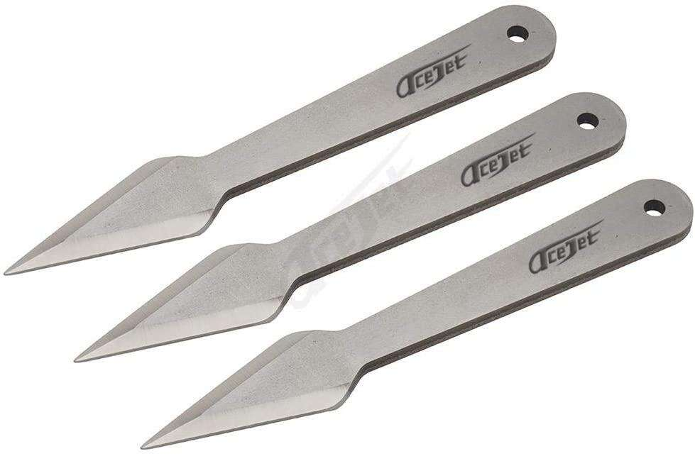 - Tre professionella kastknivar: Direkt redo för användning och träning.