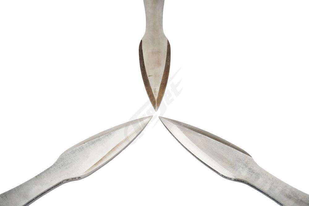 - Ett set om tre kastknivar, elegant inlindade i Adam Čeladins karaktäristiska bandana.