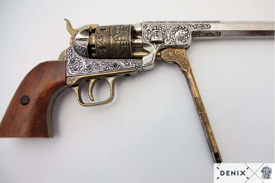 DENIX replika bevarar essensen av den ursprungliga Navy Revolver 1851 och ger en genuin inblick i 1800-talets vapen. Dess design speglar det förflutna och förbinder entusiaster med inbördeskrigets avgörande ögonblick. Håll i en bit historia och upplev känslan av detta ikoniska vapen.