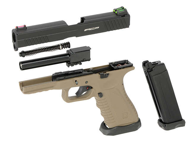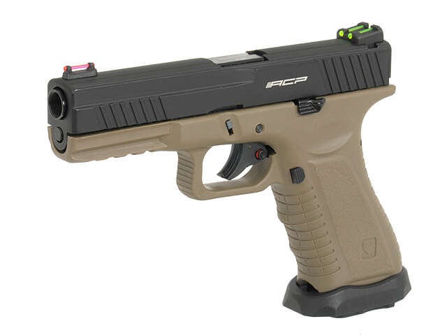 The Action Combat Pistol has a patented designed external appearance. The Dark Earth version of our ACP is striking and unique to look at. Furthermore, order it with one of our patented camouflage options and you will have a pistol like no other out there. The size and weight are similar to a real firearm pistol and as such, it can be fit into a real firearm hostler. The material that is used in its lower frame has the same material of the real firearm used. The handling and recoil is superb which then provides realism to the user. ACP601 is powered by a .12g Co2 canister which are easy to find and purchase in the stores or supermarkets. Simply inserting one Co2 canister allows you to fire up to 70 rounds. There is no denying that Co2 works better than Top Gas (Green Gas) in cold weather. We charged and operated our ACP601 in 5°C / 41°F and the test results were positive. Our Action Combat 601 works better than any other Top Gas guns in extreme weather. The velocity of the pistol stays in the 330 – 350 FPS range, which is beyond comparison than any other Top Gas Pistol. Basically put. If you want to keep your FPS accurate and consistent then the ACP is the pistol to buy. ACP601 use’s common parts which are compatible with the major leading brands in the market. For Instance, our Co2 magazine can be used in TM and WE pistols. Upgrades and modifications are possible. Performance parts can be used and external accessories can be mounted. Our ACP601 is designed for Airsoft War Games, or even upgradable to professional IPSC guns, this is totally the users choice. Unlike other Co2 Pistol in the market, our ACP Pistol has a unique upside down cartridge insertion design in the magazine. With this design, our magazine will act as a regulator, allowing Co2 flows within the magazine first before going to the chamber. This technology stablilze the Co2 pressure inside the mags, thus giving you a more stable shooting veloctiy on each shot. More Advance features can be found here: