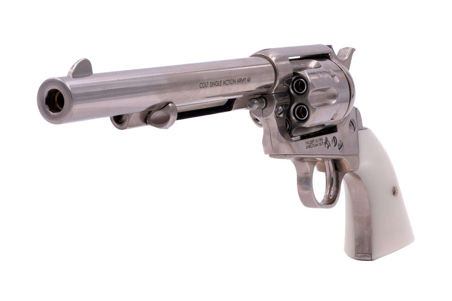 In 1836, Colt patented the Colt Paterson, the first of a long serie of successful revolvers: the Colt Walker, the Colt 1848 Dragoon, the Colt Model 1851 Navy, the Colt Model 1860 Army, and above all the mythical Colt Model 1873 Single Action Army, nicknamed ”the Peacemaker”.