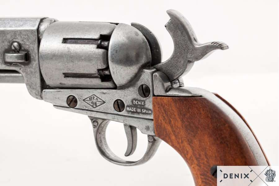 Med en sexskotts cylinder och ett ergonomiskt grepp ger denna replika en autentisk upplevelse. Att äga denna replika är som att äga en bit av historien, perfekt för både hängivna historieentusiaster och passionerade samlare. Dess noggrannhet gör den till en framstående pjäs som vittnar om hantverksskickligheten på 1800-talet.