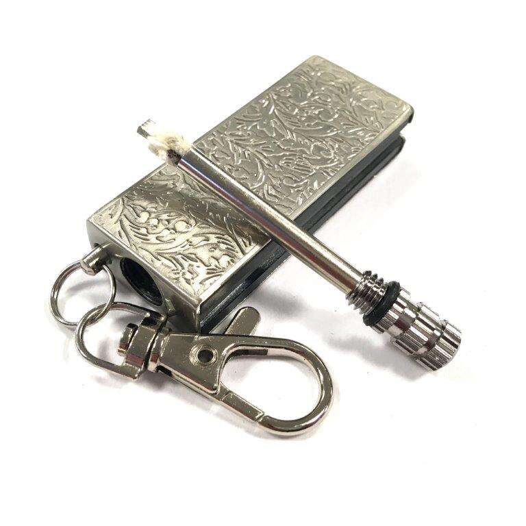 Dolphin - Bensintändare är en innovativ lösning som kombinerar eldstål, striker och en bränslebehållare i en enda enhet. Denna annorlunda tändare är designad för att vara både praktisk och lättanvänd, vilket gör den till ett utmärkt val för alla som behöver en pålitlig tändkälla.