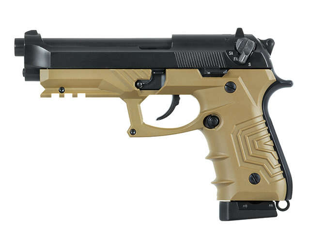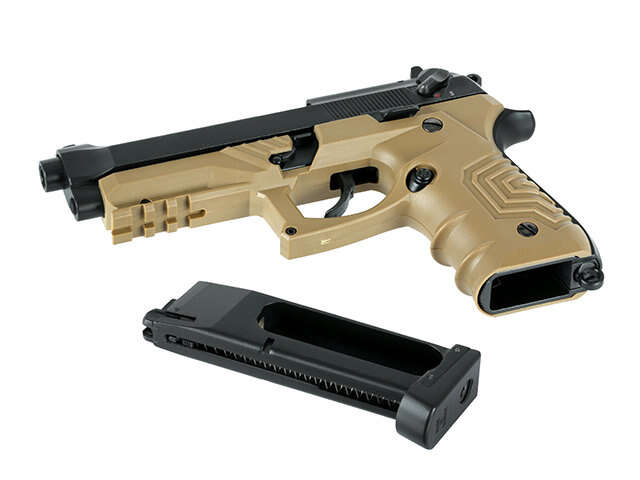 The HFC-173 pistol replica is mostly made of aluminum and metal – alloy. The gun is equipped with an extraordinary ”overlay” made of polymer. It gives a unique character, improves the grip and allows the assembly a laser or flashlight.