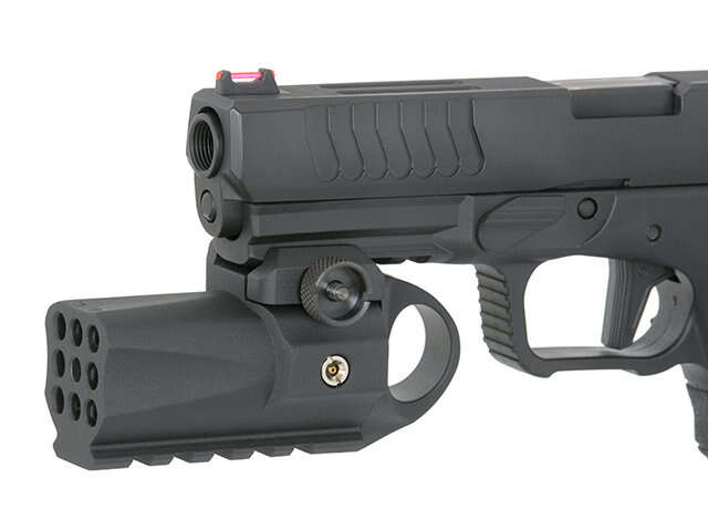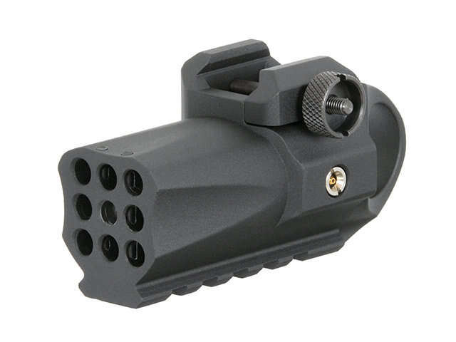Denna granatkastare är idealisk för montering på pistoler, kulsprutepistoler eller automatkarbiner. Dess Picatinny-skena ger dig möjlighet att anpassa vapnet med ytterligare utrustning. Trots sin ringa storlek levererar den en kraftfull spridning av BB:s, vilket gör den till ett värdefullt tillskott i din airsoft-arsenal. Upptäck mer airsoft tillbehör i vårt sortiment. För andra autentiska airsoft vapen, kolla in vårt utbud. Besök vår hemsida för att se hela vårt sortiment.