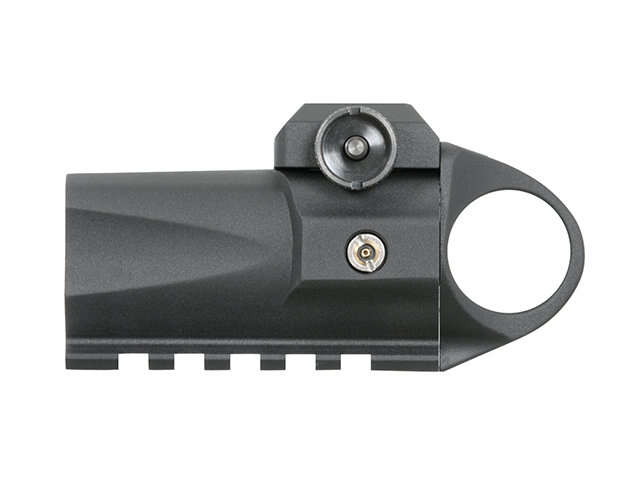 - Picatinny-skena: Utrustad med en Picatinny-skena för montering av tillbehör som lampor.