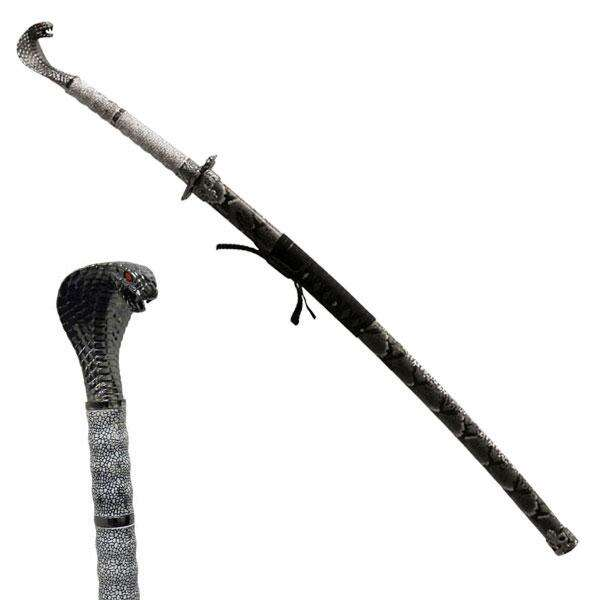 Detta samurajsvärd kombinerar traditionell design med moderna material. Med en totallängd på 41 tum är detta svärd både imponerande och välbalanserat. Klingan är tillverkad av rostfritt stål, vilket ger en hållbar och lättskött produkt. Den simulerade ormskinns skidan, tillsammans med silver cobra huvudet, ger svärdet ett unikt och iögonfallande utseende. Perfekt för samlare och de som uppskattar japansk kultur.