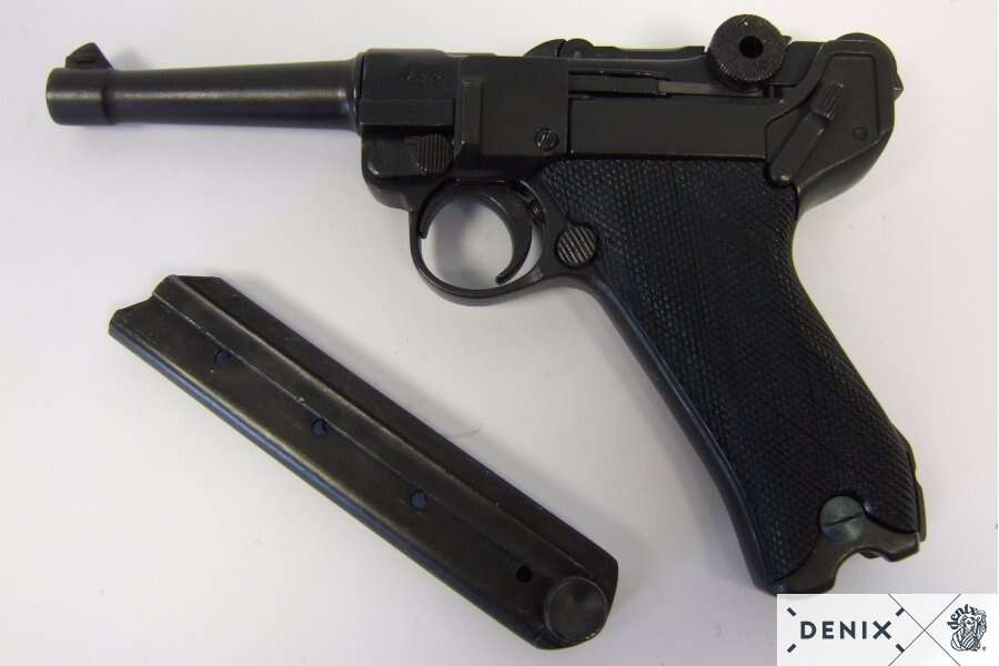 Legendarisk semiautomatisk pistol från Tyskland med det kända men annorlunda "toogle-lock" systemet. Fungerande mekanism och löstagbart magasin.