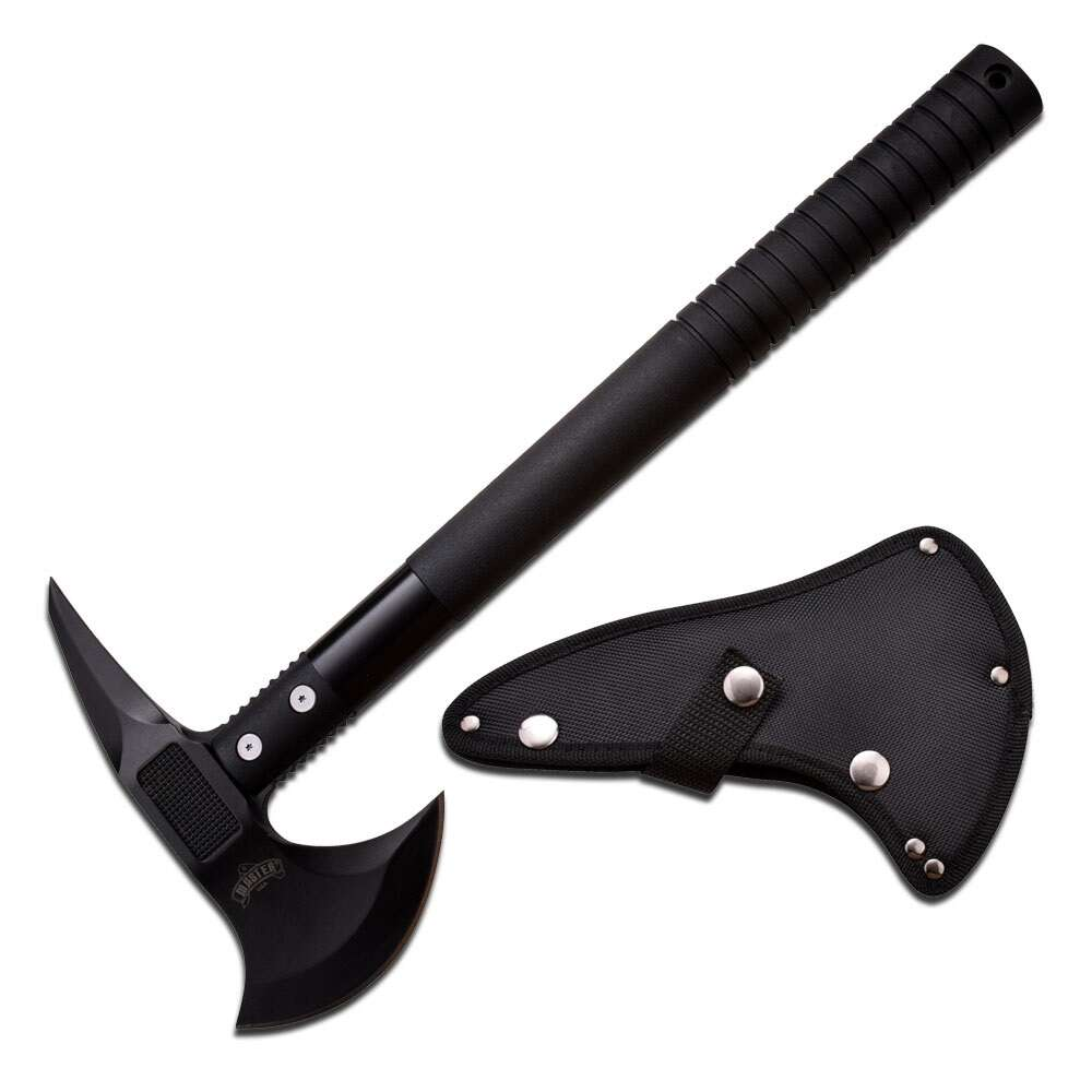 Denna robusta yxa/tomahawk från MASTER USA är ett pålitligt verktyg för en mängd olika uppgifter. Med sin tåliga konstruktion och välbalanserade design är den idealisk för både utomhusbruk och professionellt bruk. Skaftet är tillverkat av nylonfiber, vilket ger ett säkert och bekvämt grepp, även under krävande förhållanden. Bladet i rostfritt stål garanterar långvarig skärpa och motståndskraft mot korrosion.