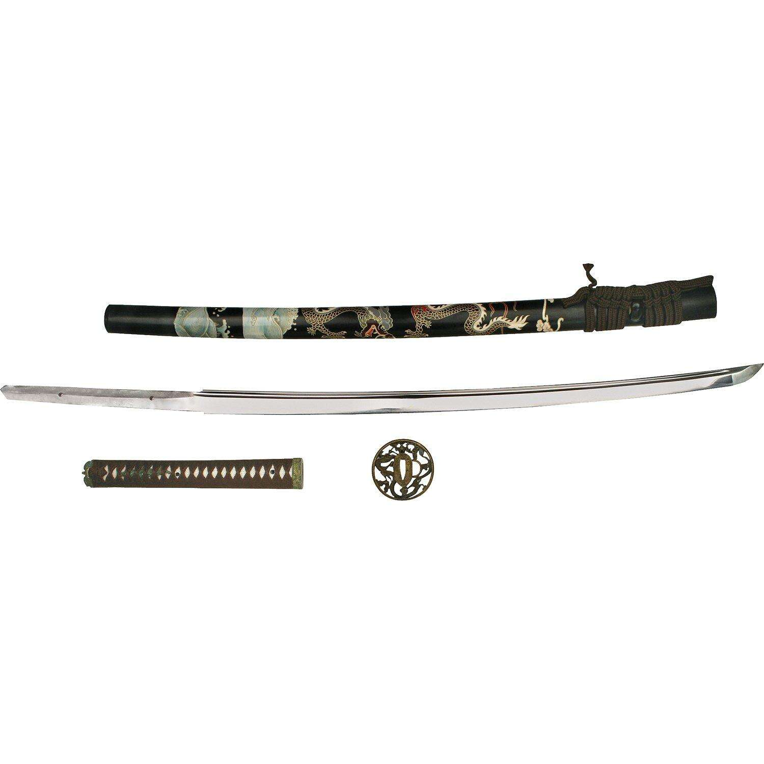 Ryumon 3200 samurajsvärd är ett traditionellt vapen med en totallängd på 41.5 tum. Dess 28-tums blad är handsmitt av 1065 högkolhaltigt stål, vilket garanterar hållbarhet och skärpa. Det autentiska handtaget är bundet med högkvalitativt rockaskinn, vilket ger ett bekvämt och säkert grepp. Svärdsskidan har en handristad och målad drake, vilket ger svärdet ett unikt och konstnärligt utseende. Medföljer svärdfodral, referensguide och rengöringskit.