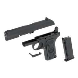 The SRC SR-33 is an incredibly realistic replica of the TT-33 and comes in a high quality collectible gun case with collectible pin and an instruction manual styled as a red propaganda pamphlet.