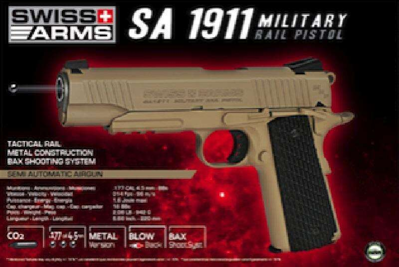 Swiss Arms - 1911 Military rail - Replika Luftpistol - Blowback - co2 - 4.5mm