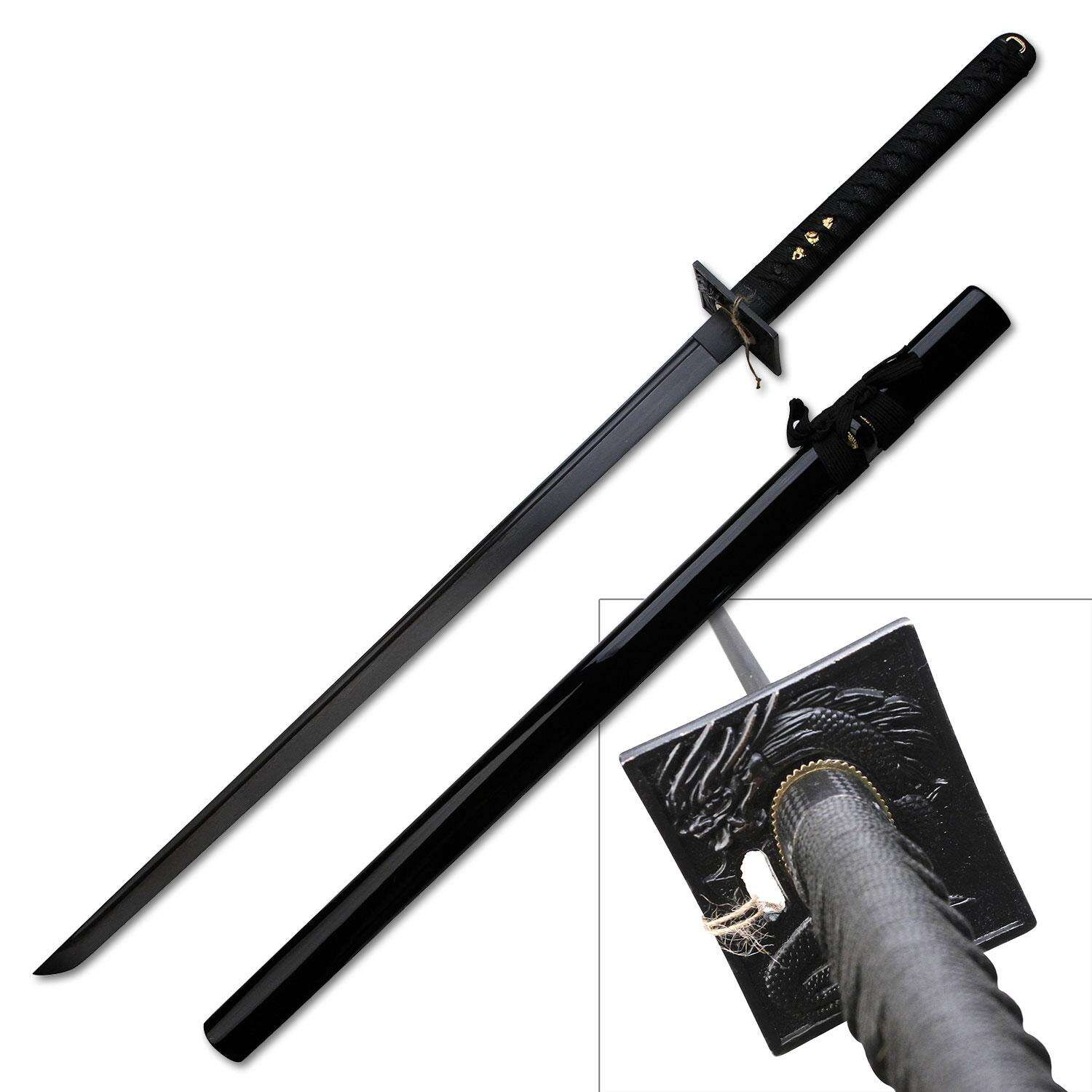 - Svart blad med blodränna: Det svarta bladet ger svärdet ett elegant och mystiskt utseende, medan blodrännan bidrar till både design och funktion.