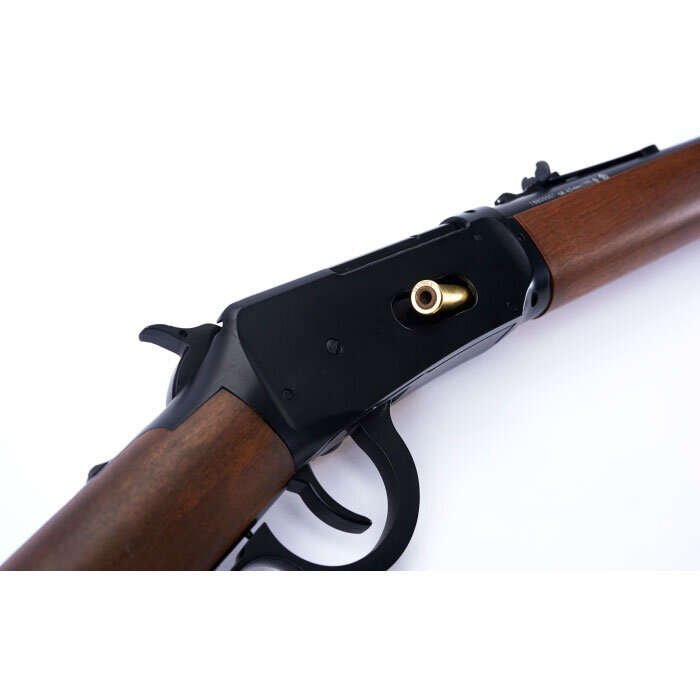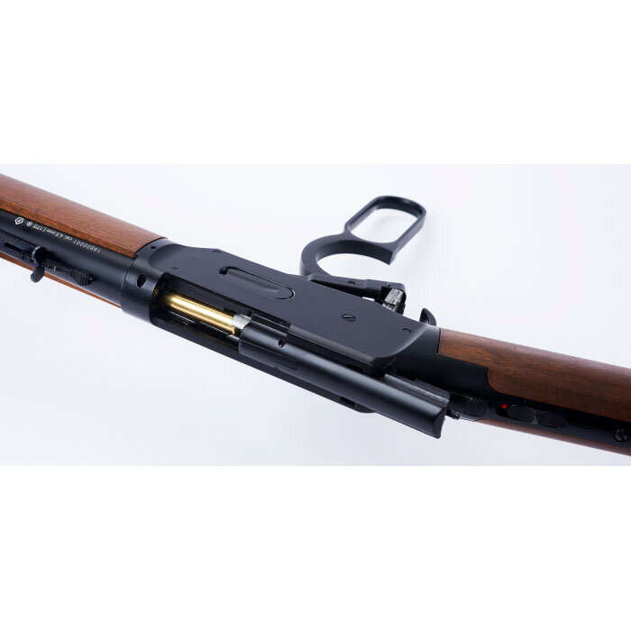 Now here’s an air gun you just HAVE to have in your collection, but not just to look at. It’s too fun to put on the wall. Images of the Wild West come alive with the Legends Cowboy Lever Action Air Rifle from Umarex Airguns! The Legends Series of air guns brings to life the classic arms of the past backed by the quality standards and imagination that only Umarex delivers. Stylized after the Model 1894, this backyard-friendly quiet Co2 rifle resembles the rifle regarded by gun historians as the ”ultimate lever-action design”. The Umarex Cowboy Lever Action spits shells when you operate the lever. You load it in realistic fashion, 10 BB cartridges inserted into its under barrel tube magazine. Put a little RWS Chamber Lube on the tip of two 12-gram Co2 cartridges and insert them butt-to-butt behind the hardwood stock’s removable buttplate, cock the lever, then you are loaded and ready to send 10 shots downrange! Quickly operate the lever to shoot each round and eject the shell, just like the real steel powder burner, but in a backyard friendly quiet design. If cowboy action shooting is your thing, get this Lever Action Cowboy Air Rifle, a Colt Peacemaker Air Pistol, some Co2 and plenty of BBs, because you’re about to give some steels and tin cans a run for their money.